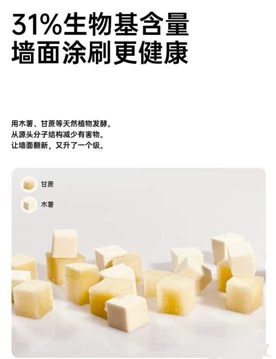 ??半森不用傳統(tǒng)石油基底提取乳膠漆,而是選擇用甘蔗,木薯等天然植物來做漆。高達31% 的生物基含量,從源頭上就能減少有害物質(zhì)的生成。刷的時候壓根不用戴口罩,湊近聞是剛割過的青草味,沒有刺鼻感也沒有“香精蓋味” 的悶感,小編這種嚴重鼻炎,刷的全過程沒打過噴嚏。