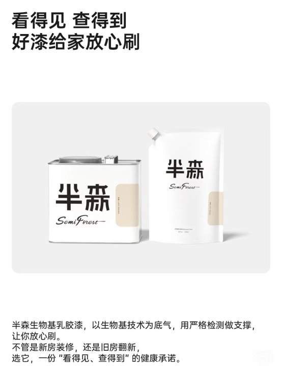 以上四點可以看出半森的環(huán)保不只是 “達標”,更是 “超預(yù)期”——31% 生物基讓原料更天然,三重認證覆蓋短期和長期安全,2.5L小容量還避免了廢漆污染,剛好適配想要當天入住人群翻新的環(huán)保需求。 對著急住又重環(huán)保的家庭來說,選它不用 “賭安全”,因為它就是安全的代名詞!